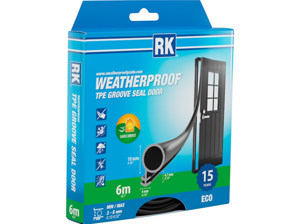 Vysoce flexibilní O-profilové těsnění určené pro dveře a okna s drážkou pro upevnění. Vyrobeno z termoplastického elastomeru (TPE) – odolného, kvalitního a plně recyklovatelného materiálu. Je voděodolné, omyvatelné a odolává extrémním teplotám od -50 °C do +130 °C, takže spolehlivě funguje po celý rok. Těsnění má dlouhou životnost až 15 let, výborně odolává chemikáliím (kromě rozpouštědel, jako je lakový benzín nebo oleje) a pomáhá šetřit energii díky ochraně před průvanem a chladem. Vlastnosti: Vhodné pro mezery 3–8 mm Průměr těsnění: 10 mm Šířka upevňovacího šípu: 4 mm, hloubka: 4,7 mm Instalace do drážky snadná a možná za každé teploty Vysoce kvalitní TPE, vyrobeno ve Finsku