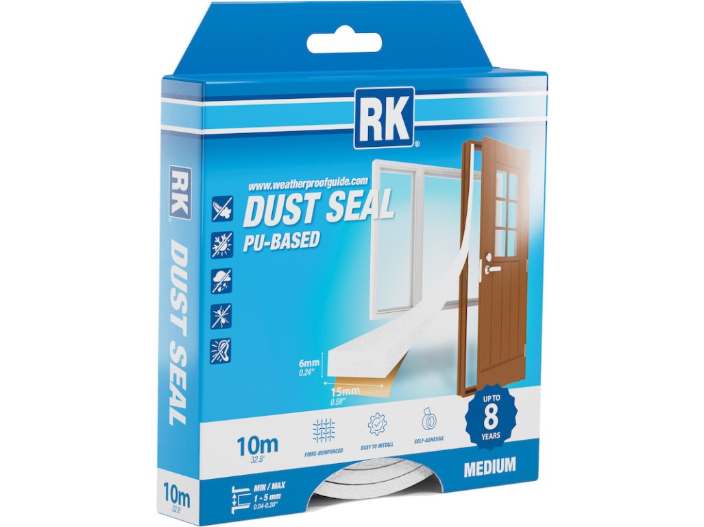Samolepicí protiprachové těsnění z polyuretanu (PU) vyztužené vlákny pro lepší stabilitu při montáži. Je propustné pro vzduch, ale účinně zabraňuje pronikání prachu do utěsněného prostoru. Instalace je rychlá a snadná, bez potřeby speciálního nářadí. Výhody: Snadná a rychlá montáž Vysoce flexibilní a odolné Vyztužené vlákny – při instalaci se neroztahuje Vhodné pro mezery 1–5 mm